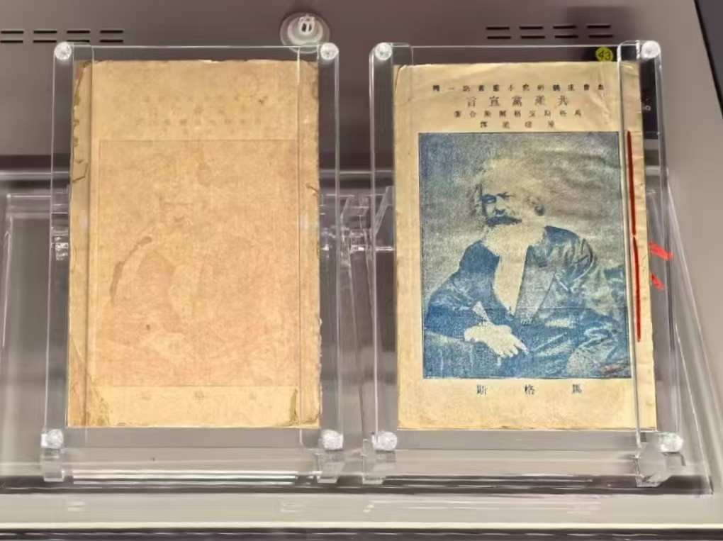 展柜中带着蚀痕的纸页,留存着当年陈望道在油灯下翻译时的温度,他“蘸着墨汁吃粽子”,让纸上的真理有了烟火气的重量。马克思与恩格斯的手稿复制品旁,标注着那些改变世界的论断:“无产者在这个革命中失去的只是锁链。他们获得的将是整个世界。” 曾经振聋发聩的呐喊,此刻化作展厅里的无声惊雷,与参观者共振。