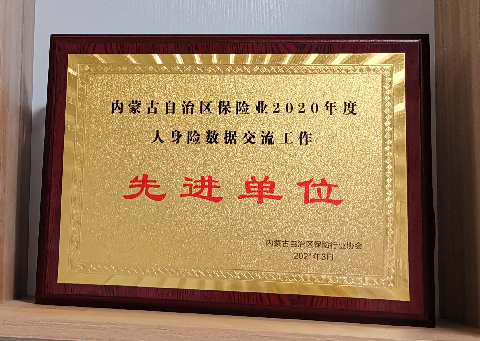 近日,内蒙古自治区保险行业协会对2020年度人身险数据交流工作表现突出的先进单位和个人予以表彰。阳光人寿内蒙古分公司荣获2020年度人身险数据交流工作“先进单位”奖。