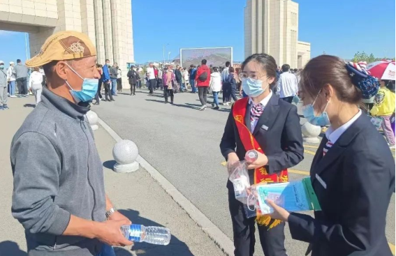 呼伦贝尔河东支行工作人员前往考场外搭建爱心助考服务站,为考生及家长提供防疫物资、饮用水、药品等免费便民服务。