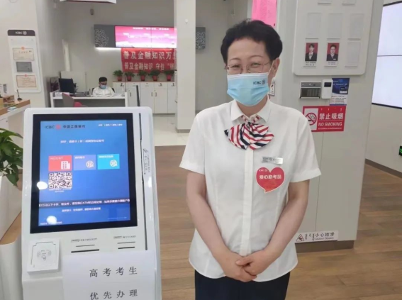 通辽铁南支行叫号机值守人员能够精准识别考生及陪考家长,在最短时间内帮助其完成业务办理。