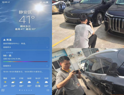 上海分公司为了保证客户理赔时效,车险查勘人员每天在烈日下工作超10小时,穿梭于各个事故现场,仔细核实车辆的每一处损失。高温下,不到五分钟查勘服已然湿透,但他们没有丝毫松懈和降低服务标准,为客户耐心细致讲解理赔流程。
