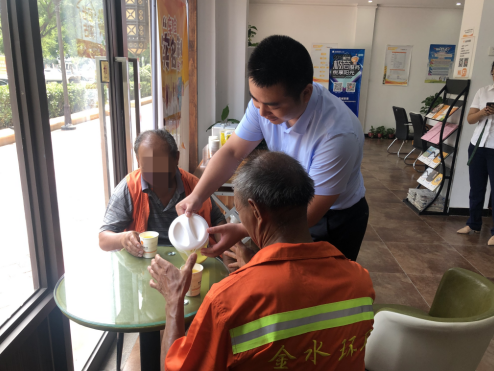 为帮助高温工作人员消暑,阳光财险河南分公司各中支“阳光驿站”开展“夏送清凉”活动。高温天气下,阳光的员工为依旧坚守岗位的环卫工人、快递员提供休息场所,送上矿泉水和解暑西瓜,并在休息之余,为他们讲解金融知识,普及保险保障理念。