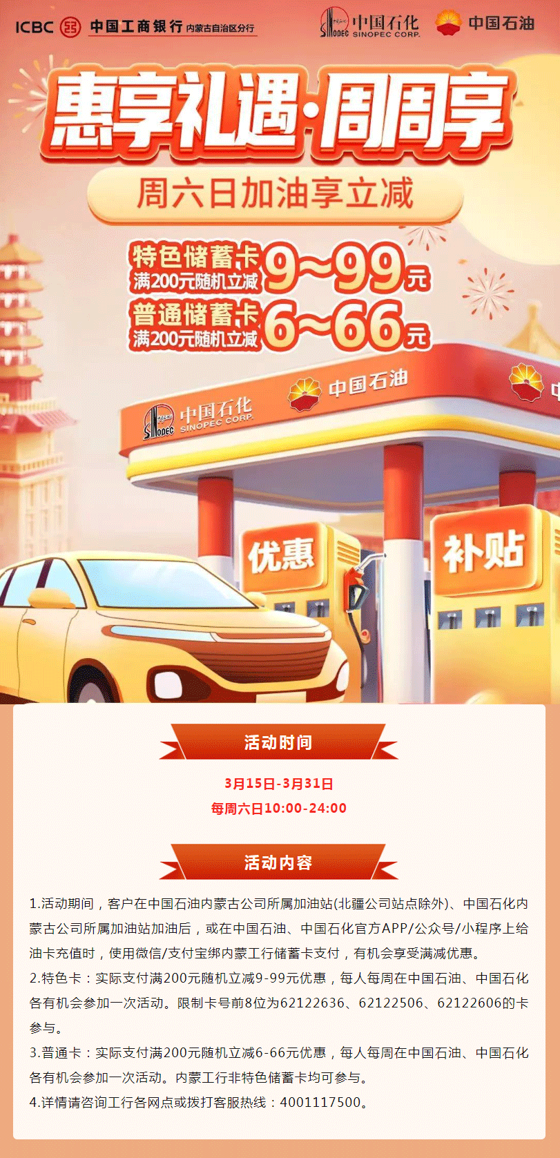 周六日加油享立减,最高减99元!