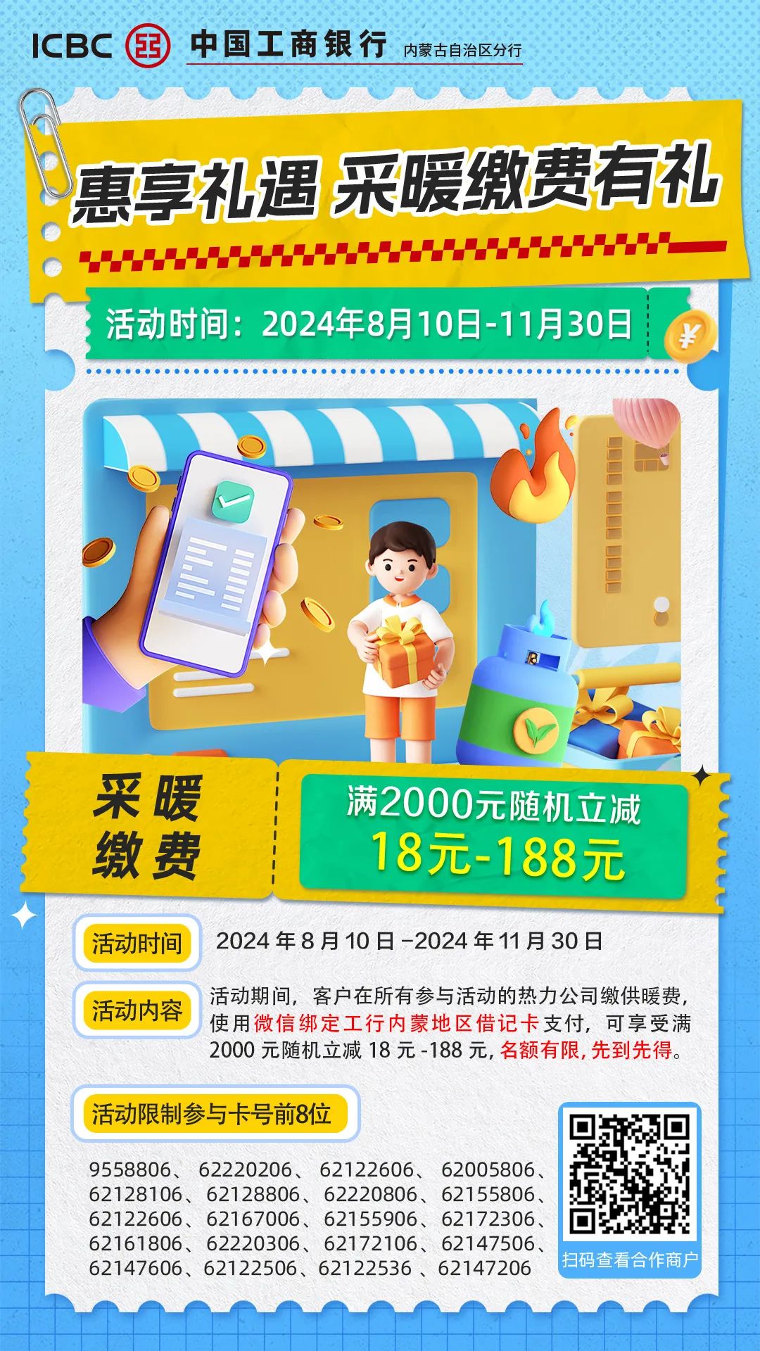 工商银行内蒙古分行:采暖缴费有礼,随机立减至高188元!
