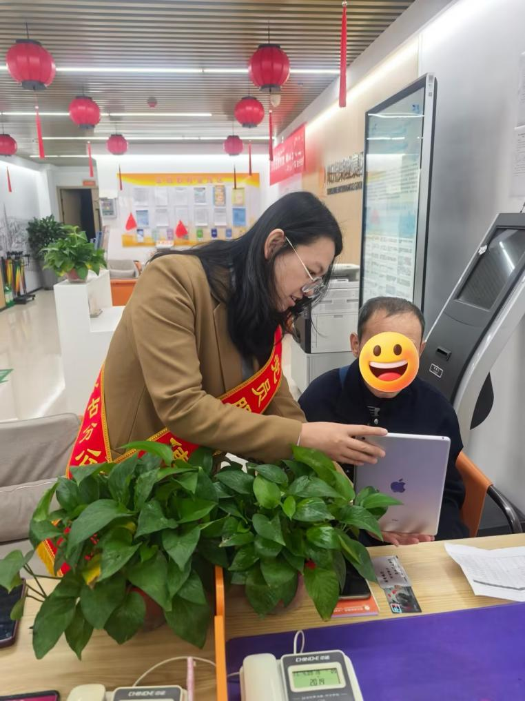 业务办理过程中,工作人员专门启用了柜面配备的适老化服务设备。他们将业务平板切换至适老界面,调大字体,采用简洁明了的布局,并全程耐心引导,细致协助老人完成每一步操作。清晰的界面、放大的文字、温和的讲解,有效缓解了老年客户面对智能设备时的不安,也让科技传递出浓浓的人文温度。
