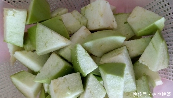 首先我们要做的就是先把茄子清洗干净,然后用菜刀把茄子皮去掉,最后再把茄子切成块状的,还有我们可以顺便把青辣椒和蒜也切一下,等待下面的使用,我们把切好的茄子放进一个容器里面,然后再撒一点食用盐进去进行腌制,大概等上十分钟左右就可以了,十分钟过后,我们会看到容器里面会有多余水分,这个是从茄子上面腌制出来的,我们直接把它倒掉就可以了,然后再撒上一些玉米淀粉,用筷子将它们搅拌均匀。