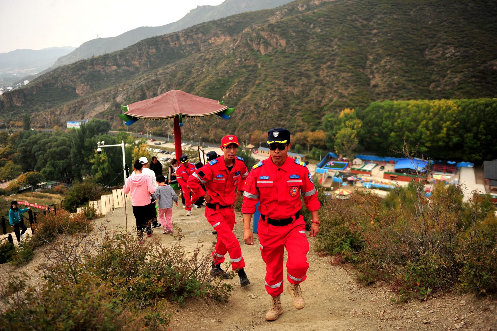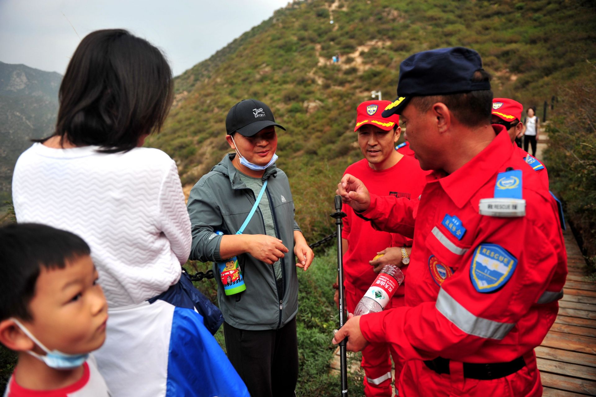 揭牌后,内蒙古民间户外救援协会呼和浩特市民间公益户外救援大队的队员们登山进行巡山,巡查需要帮助的群众。