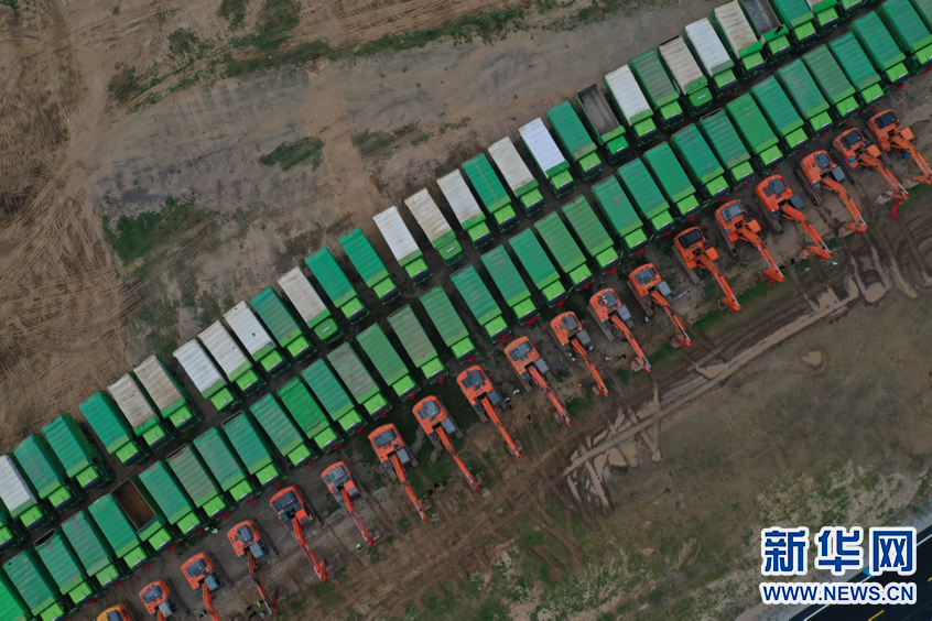 呼和浩特新机场建设动员会现场(无人机照片)。新华网 发(张伟 摄)