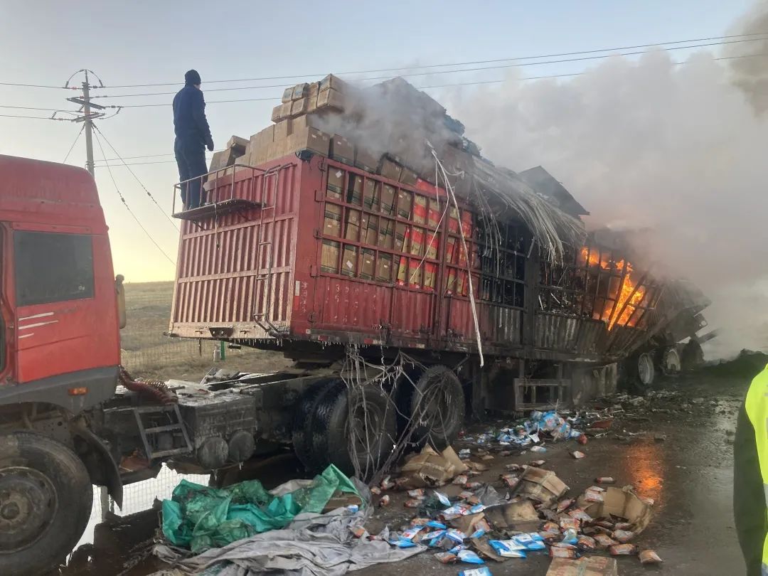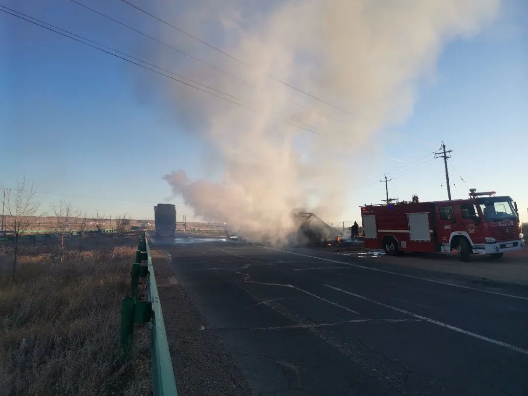 10月23日早晨7时许,乌兰察布市四子王旗交管大队格根塔拉中队民警接到报警,G209国道格根塔拉旅游点北2公里处有一辆大货车着火了,中队民警立即前往配合消防官兵一起灭火,及时消除了一起重大道路交通安全隐患,将群众财产损失降至最低。