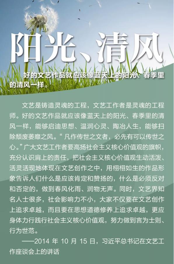 举旗帜、聚民心、育新人、兴文化、展形象,文艺战线牢记使命、勇于担当。