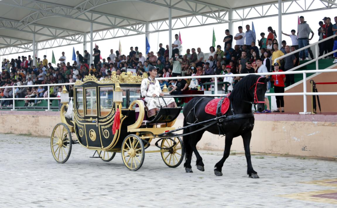 马鬃随着骏马的飞驰,凛凛飘动;骑手的征袍,也随风鼓起。现场观众人头攒动,场面极其热烈,尽享赛马运动带来的激情和欢乐。