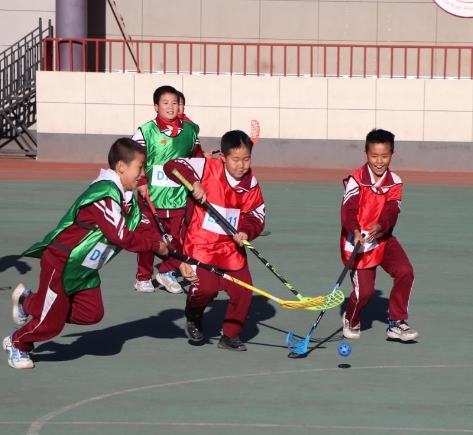 呼和浩特市回民区钢铁路第二小学学生体验旱地冰球项目